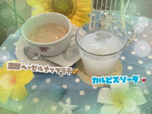 暑い方は炭酸のカルピスソーダ🥤・冷えやすい方はヘーゼルナッツラテ☕