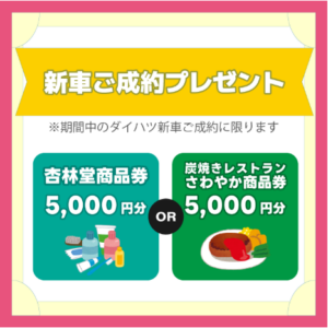 期間中に新車成約いただいた方へのプレゼントとなります!