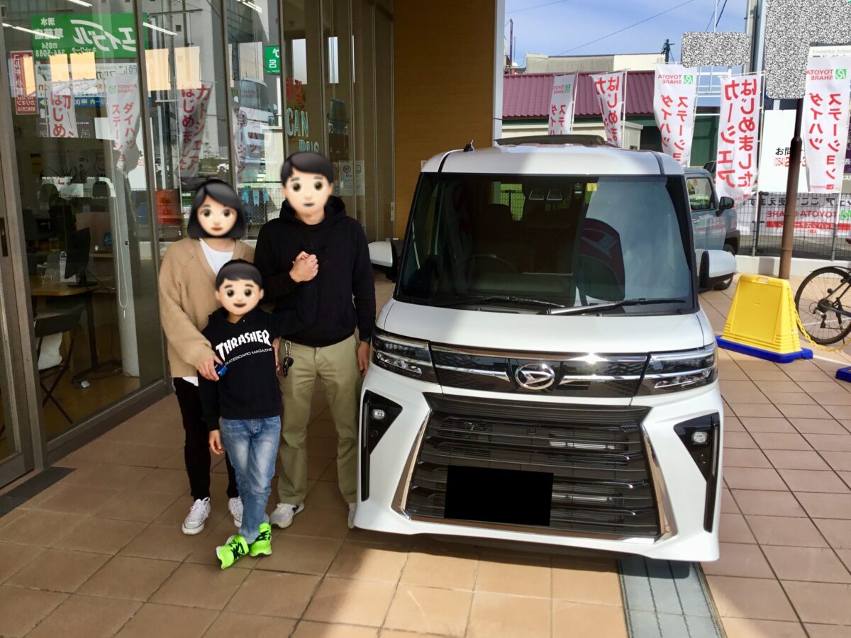杉澤|ご納車おめでとうございます!カッコいいタントカスタムでお子様と色々な所へドライブ楽しんで下さいね。今後ともよろしくお願いいたします。
